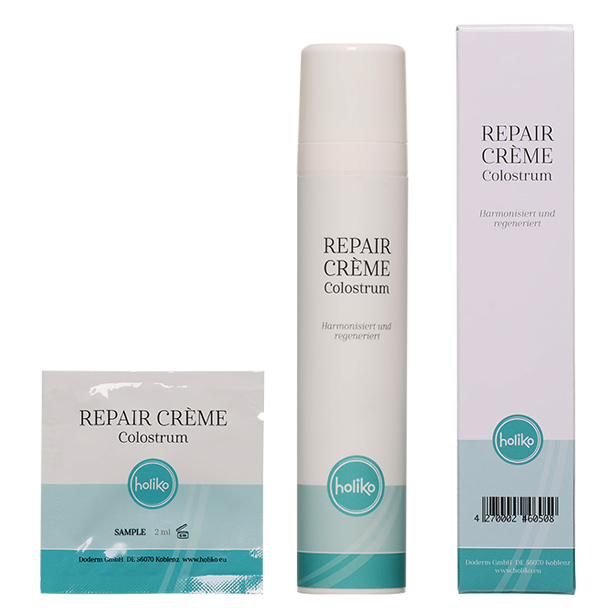 Diepe voeding voor droge, geïrriteerde of beschadigde huid. Beschrijving Holiko Repair Crème is een rijke, troostende moisturizer die de veerkracht van de huid herstelt wanneer deze droog, schilferig of gestrest is. De formule combineert de regeneratieve kracht van colostrum met kalmerende teunisbloemolie en herstellende cacaoboter om de huid intensief te voeden en irritatie te verzachten.